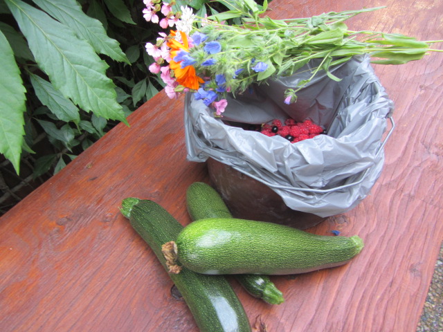 SvaraRaderaDen där ringblomsvasen gillar jag skarpt - så fin... och tänk att hallonen är mogna :)